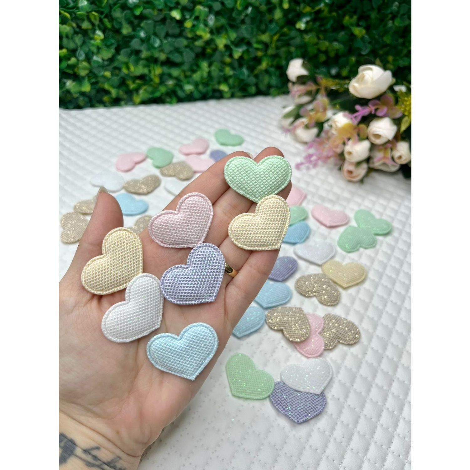Aplique de tecido almofadado coração com glitter 2,5cm unidade