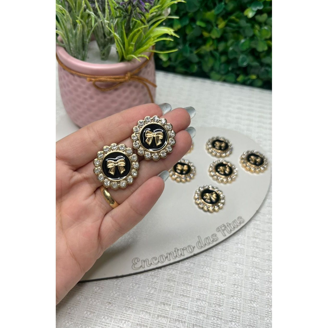 Aplique Chaton Redondo com Lacinho e Fundo Preto - Unidade