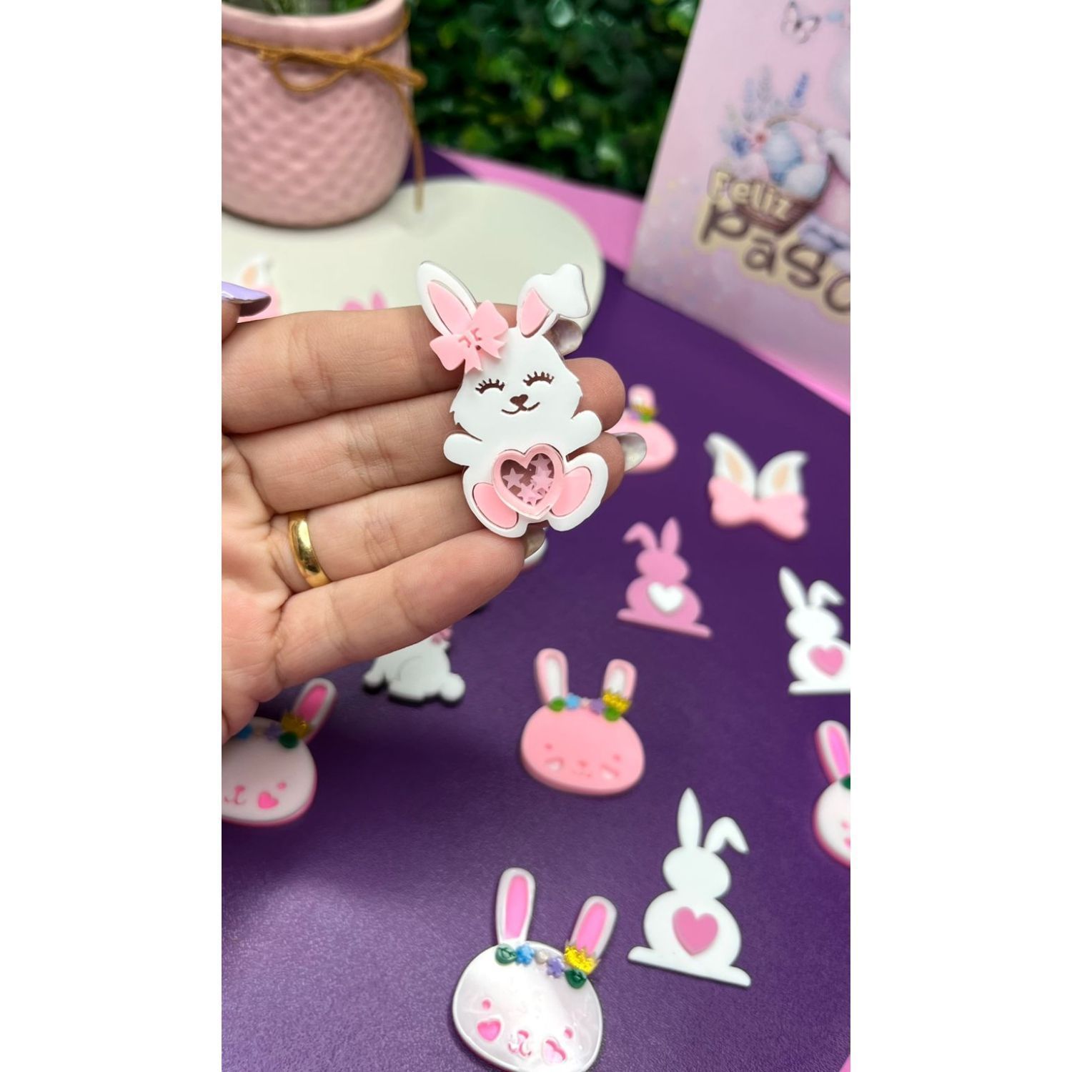Aplique de Acrílico Coelho Branco com Coração - Unidade