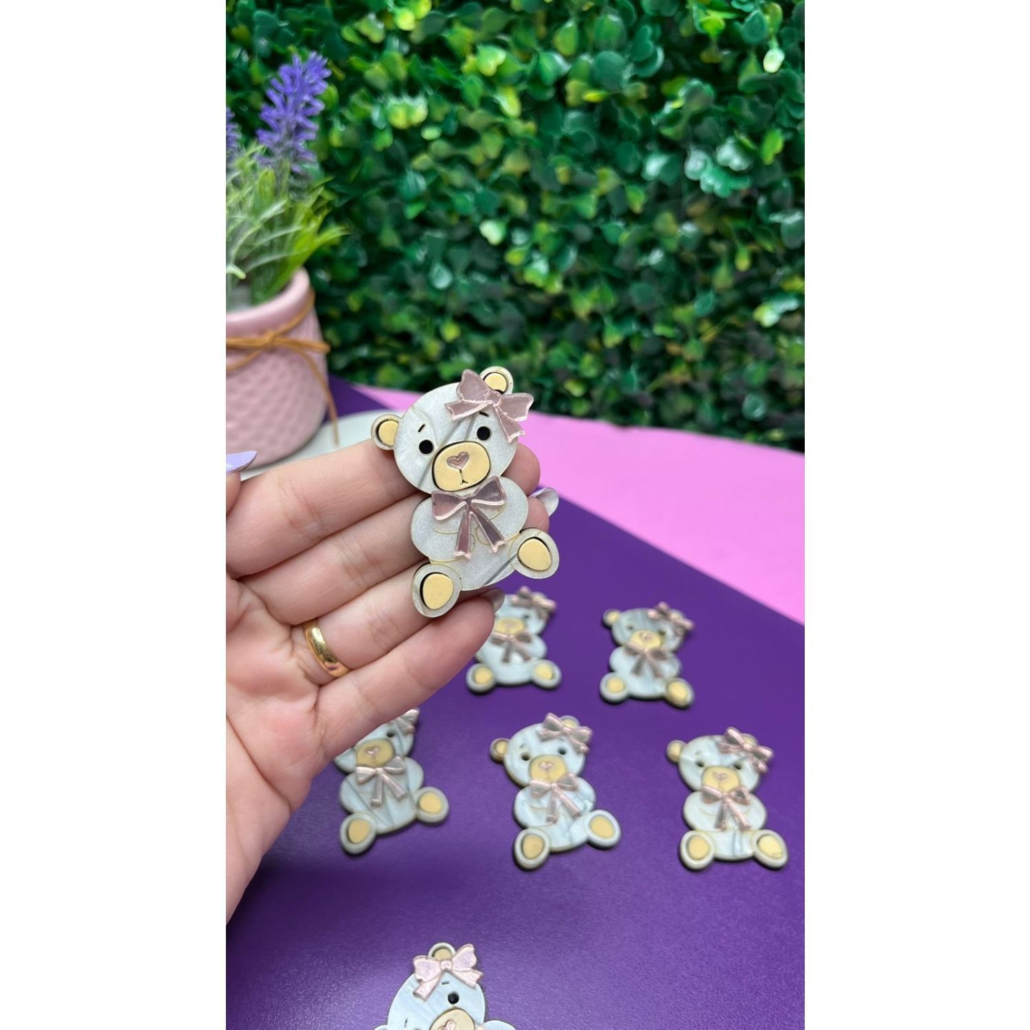 Aplique de Acrílico Urso com Lacinhos Rosê - Unidade