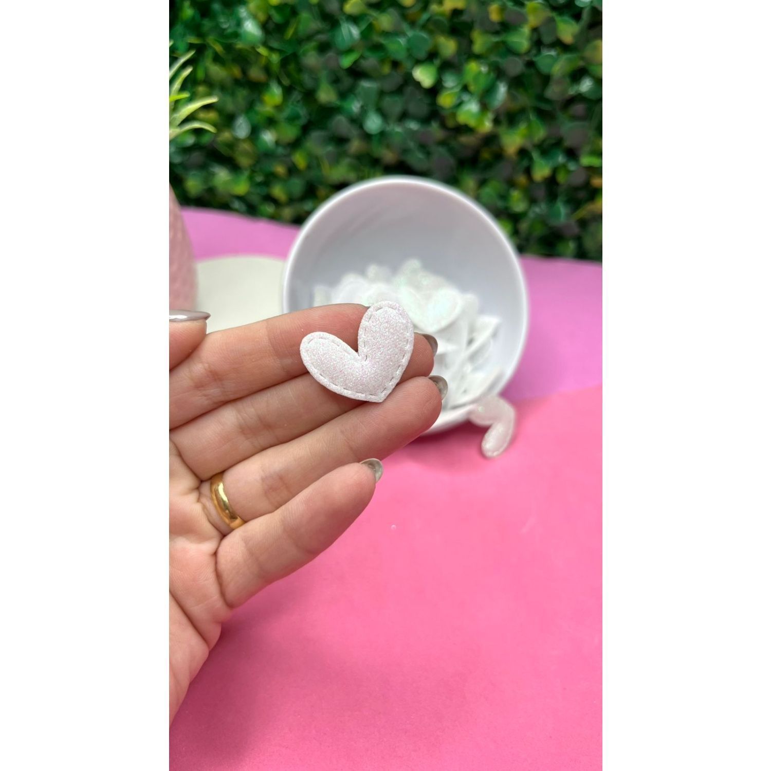 Aplique de Glitter Mini Coração com Pesponto - Branco - Unidade