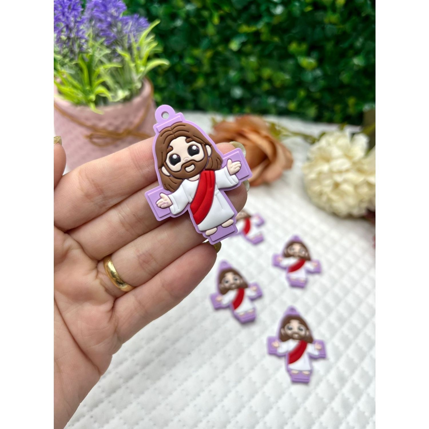 Aplique Emborrachado Cruz Lilás para Terço - Unidade