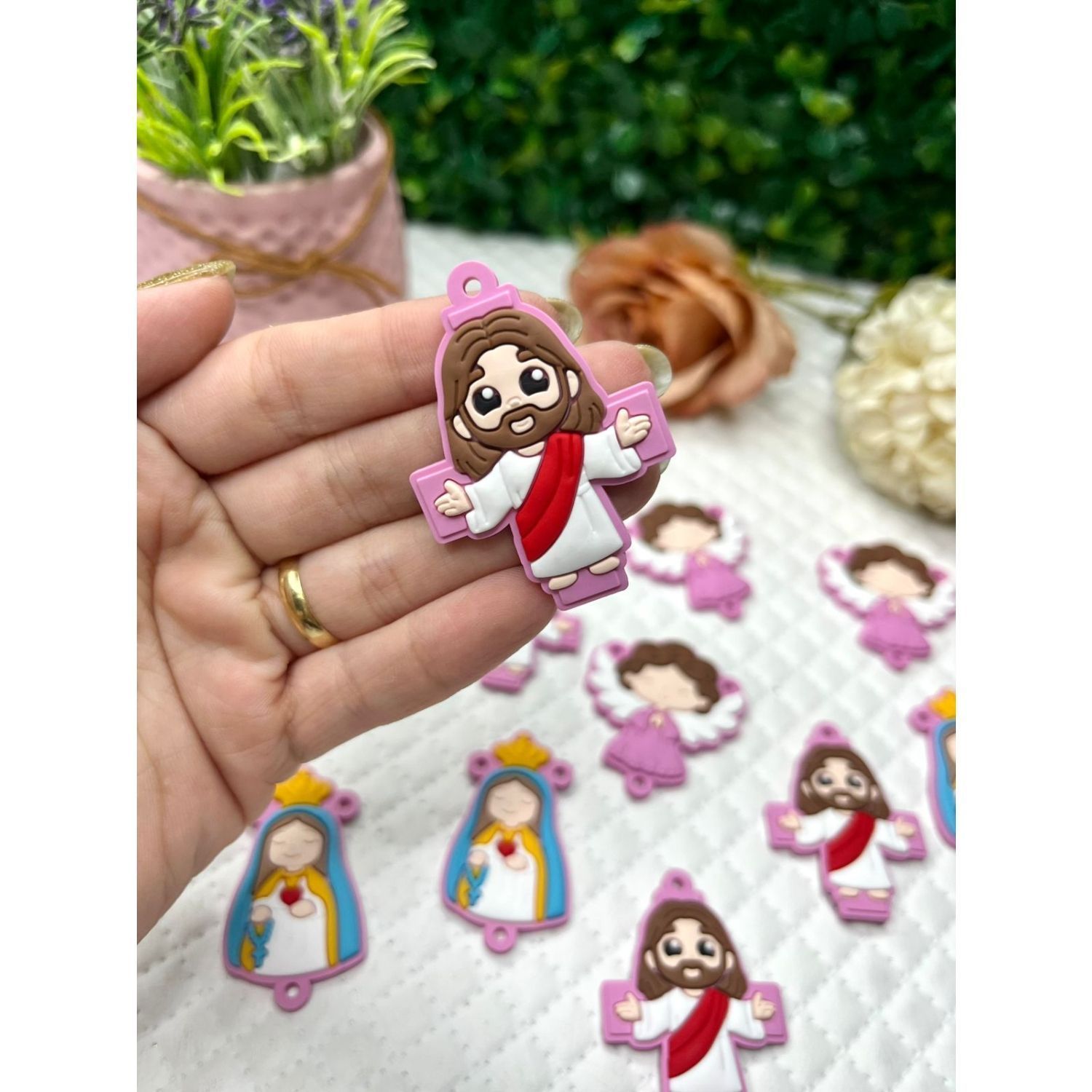 Aplique Emborrachado Cruz Rosa para Terço - Unidade