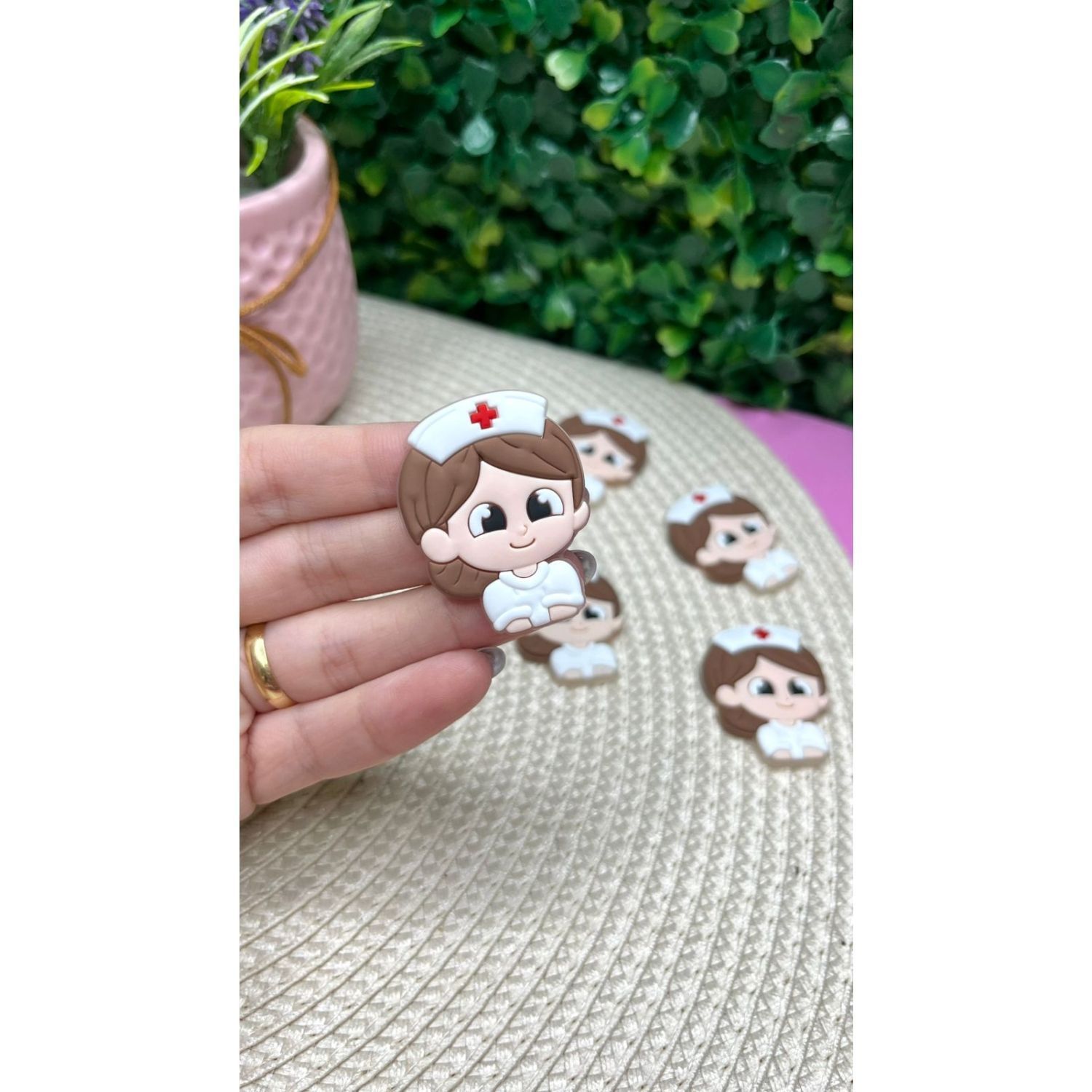 Aplique Emborrachado Enfermagem Cabelo Castanho - Unidade
