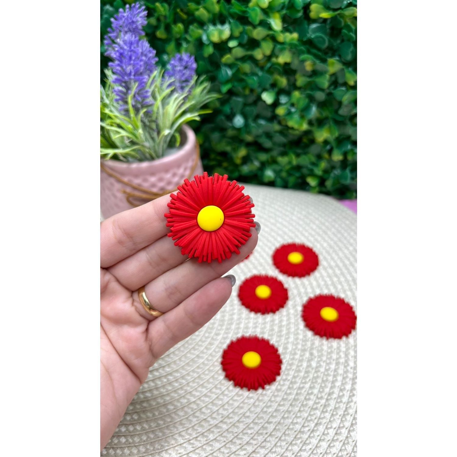 Aplique Emborrachado Flor Estilo Margarida Vermelho com Amarelo - Unidade
