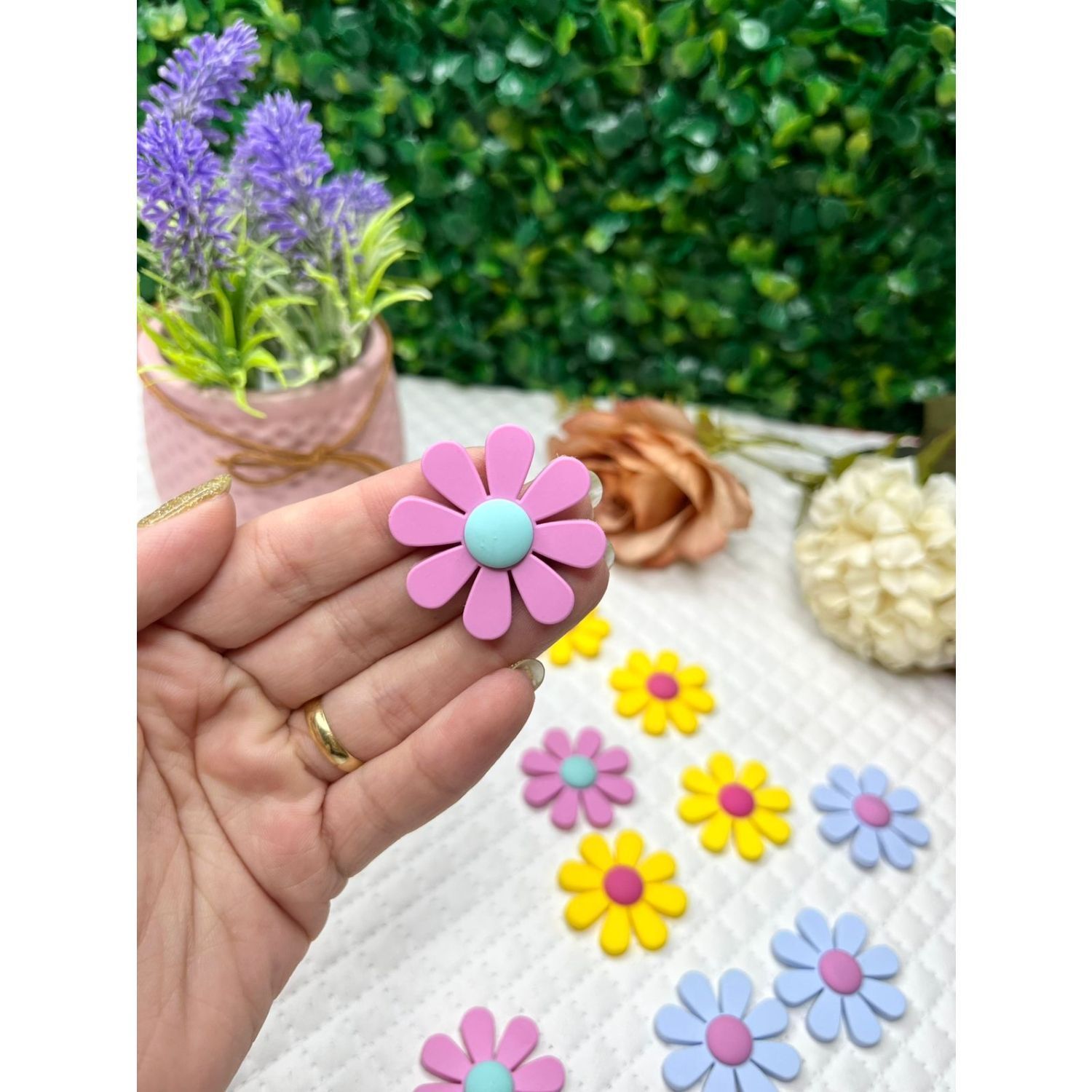 Aplique Emborrachado Flor Margarida Rosa Bebê - Unidade