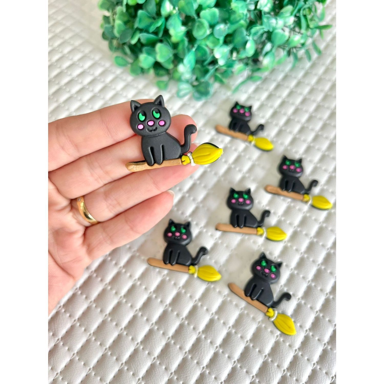 Aplique Emborrachado Halloween Gatinho na Vassoura - Unidade