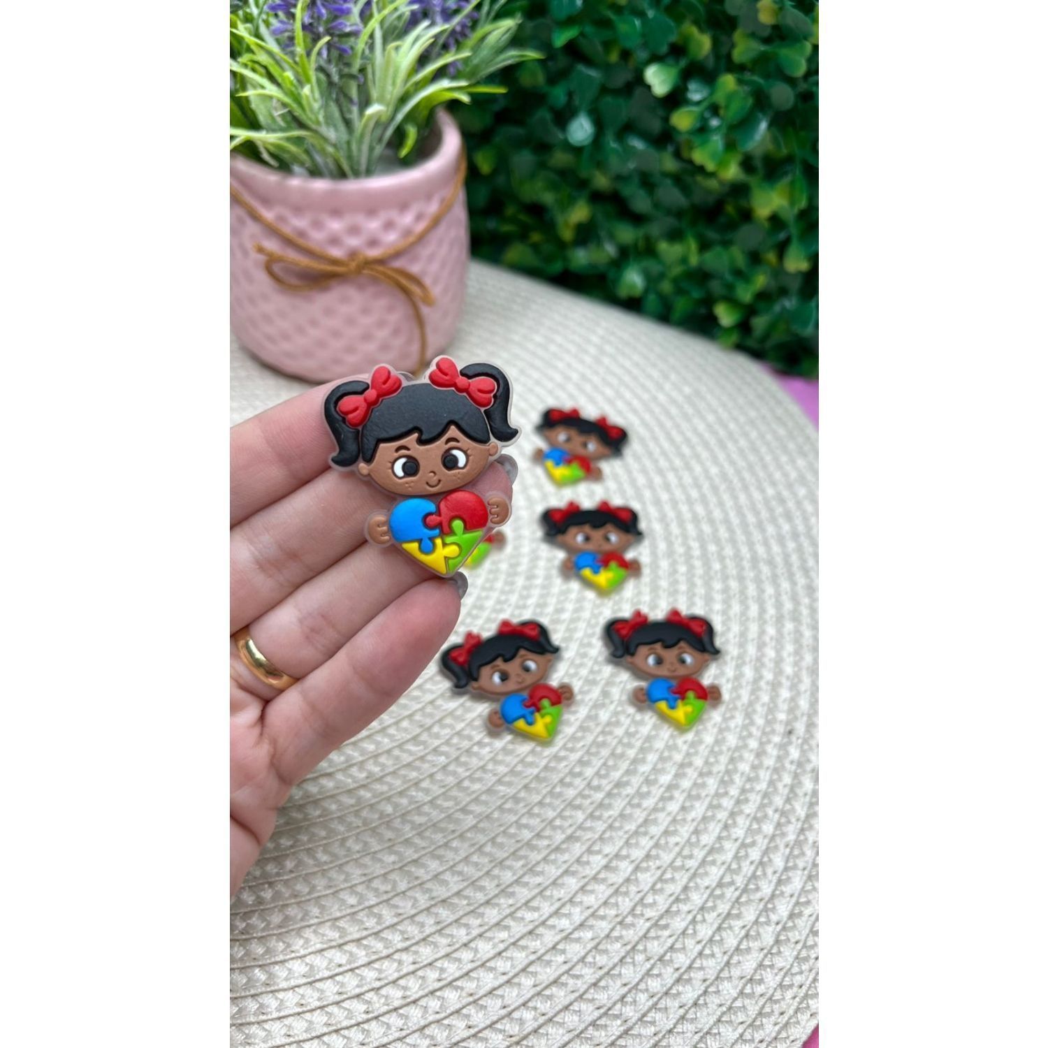 Aplique Emborrachado Menina Morena Coração Autismo - Unidade