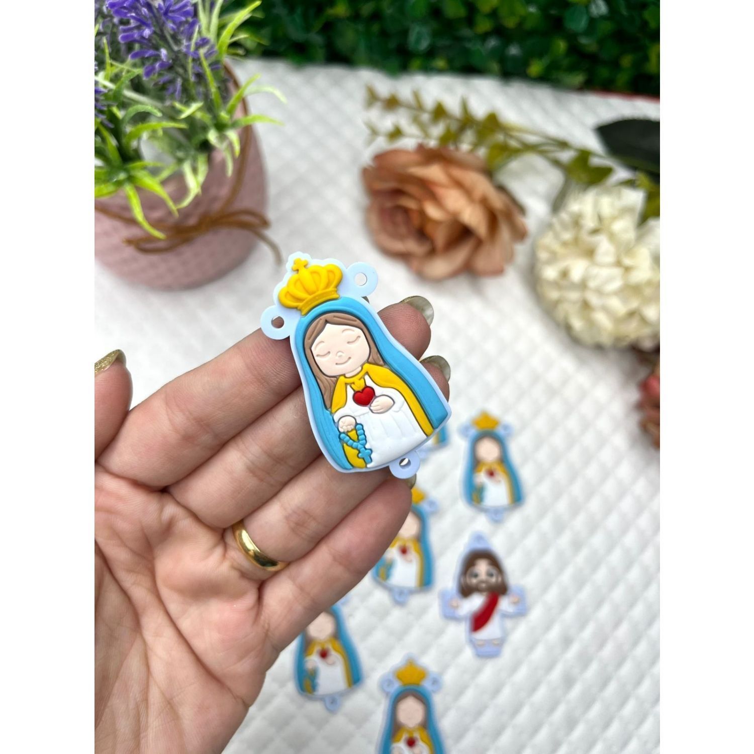 Aplique Emborrachado Santinha Azul para Terço - Unidade