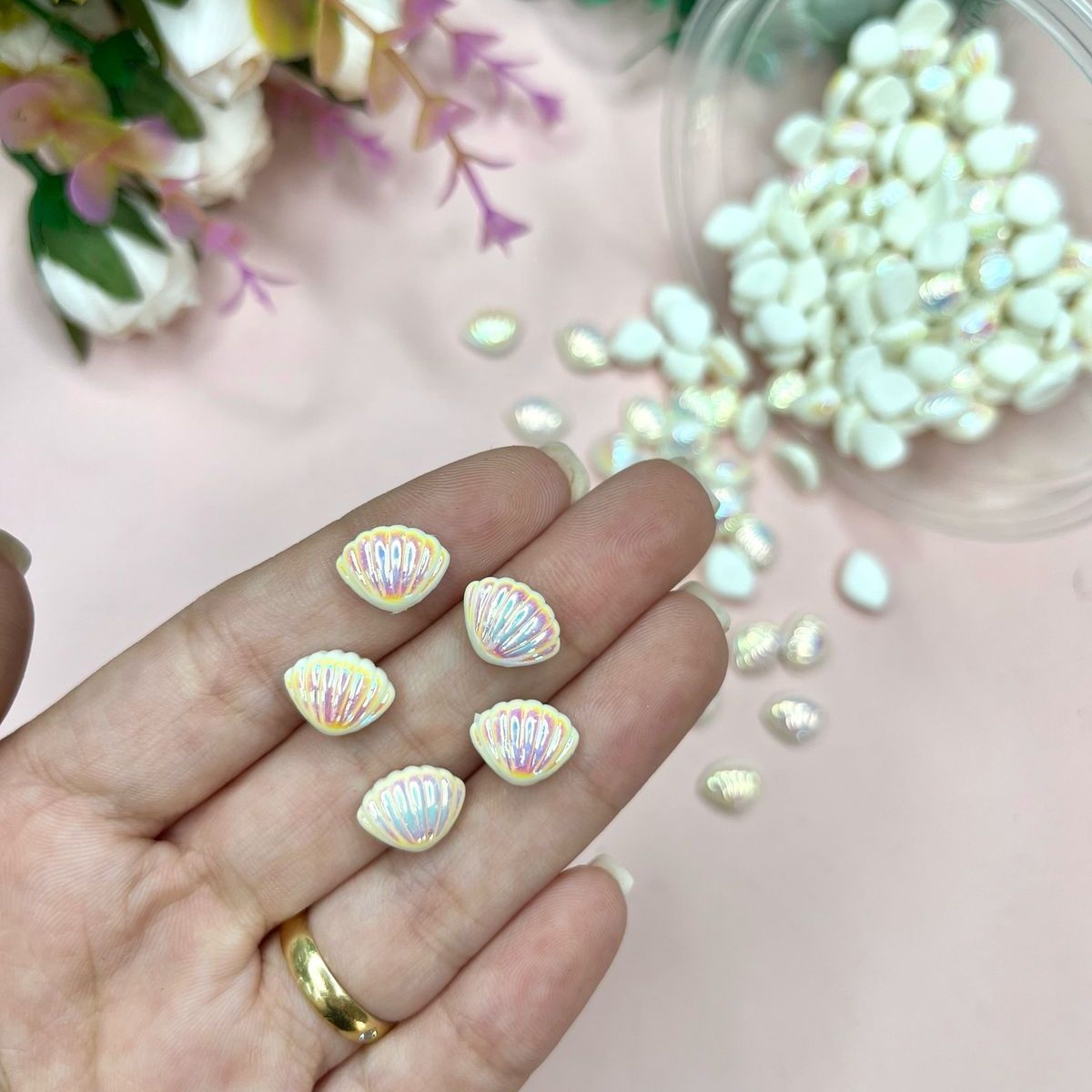 Aplique Resina Mini Concha do Mar Branco Furta Cor - 10 unidades