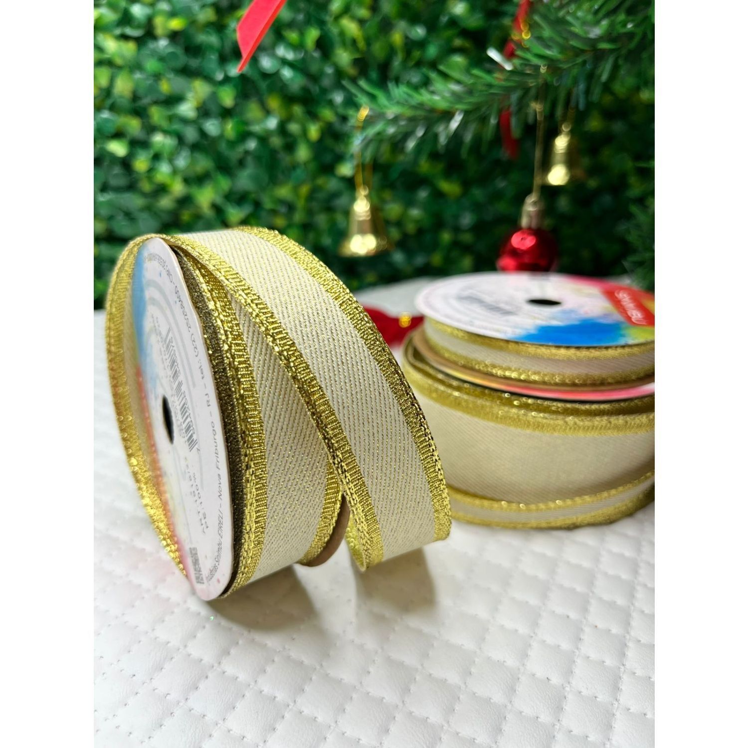 Coleção Natal: Fita Sinimbu Dourado com Brilho e Borda Dourada Aramada 22mm - Metro