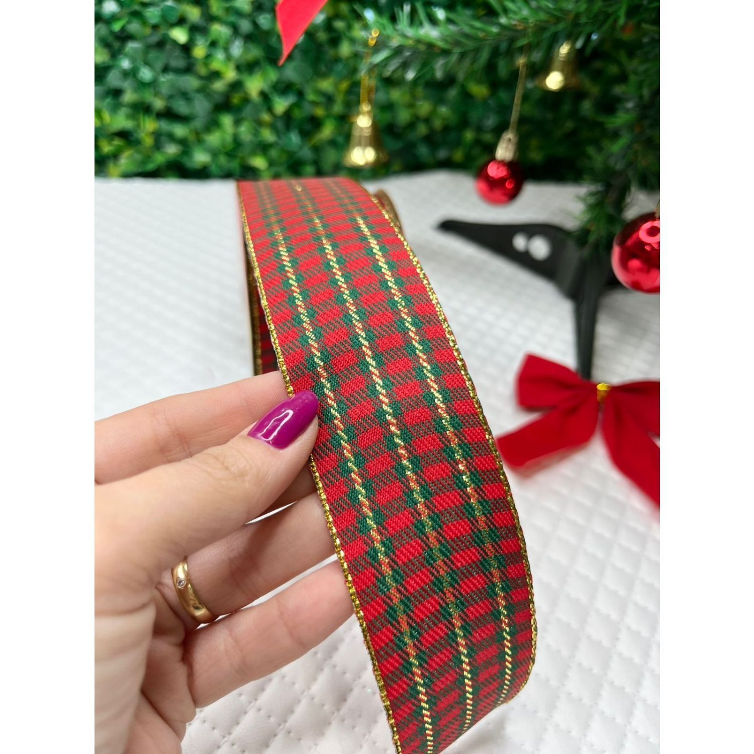 Coleção Natal: Fita Sinimbu Xadrez Verde com Vermelho 38mm - Metro