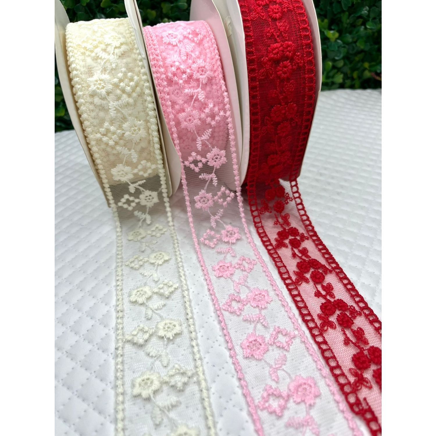 Fita de Renda com Flores Bordadas 38mm - Metro