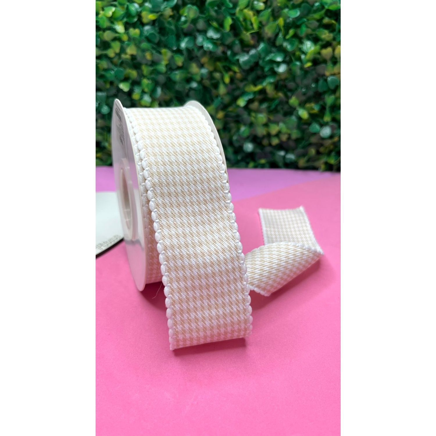 Fita Pied de Poule com Borda Ondulada 38mm Nude - Metro
