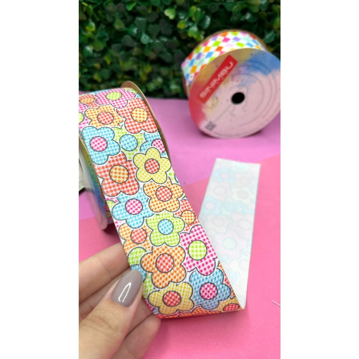 Fita Sinimbu 38mm Festa Junina Estampada Flor Xadrez - Metro