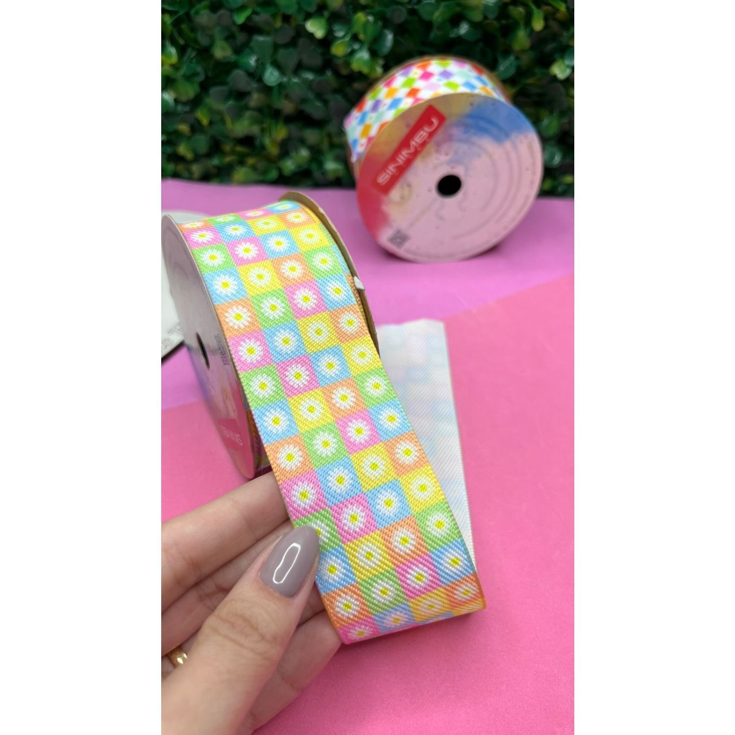 Fita Sinimbu 38mm Festa Junina Estampada Quadriculada Girassol - Metro