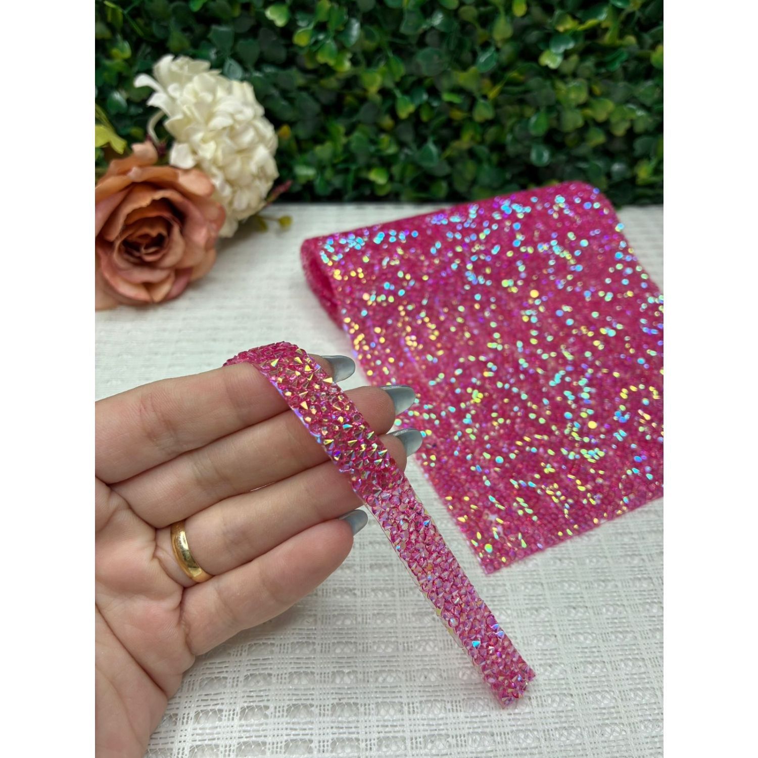 Manta de Strass Rosa Chiclete com Boreal - 1x40cm