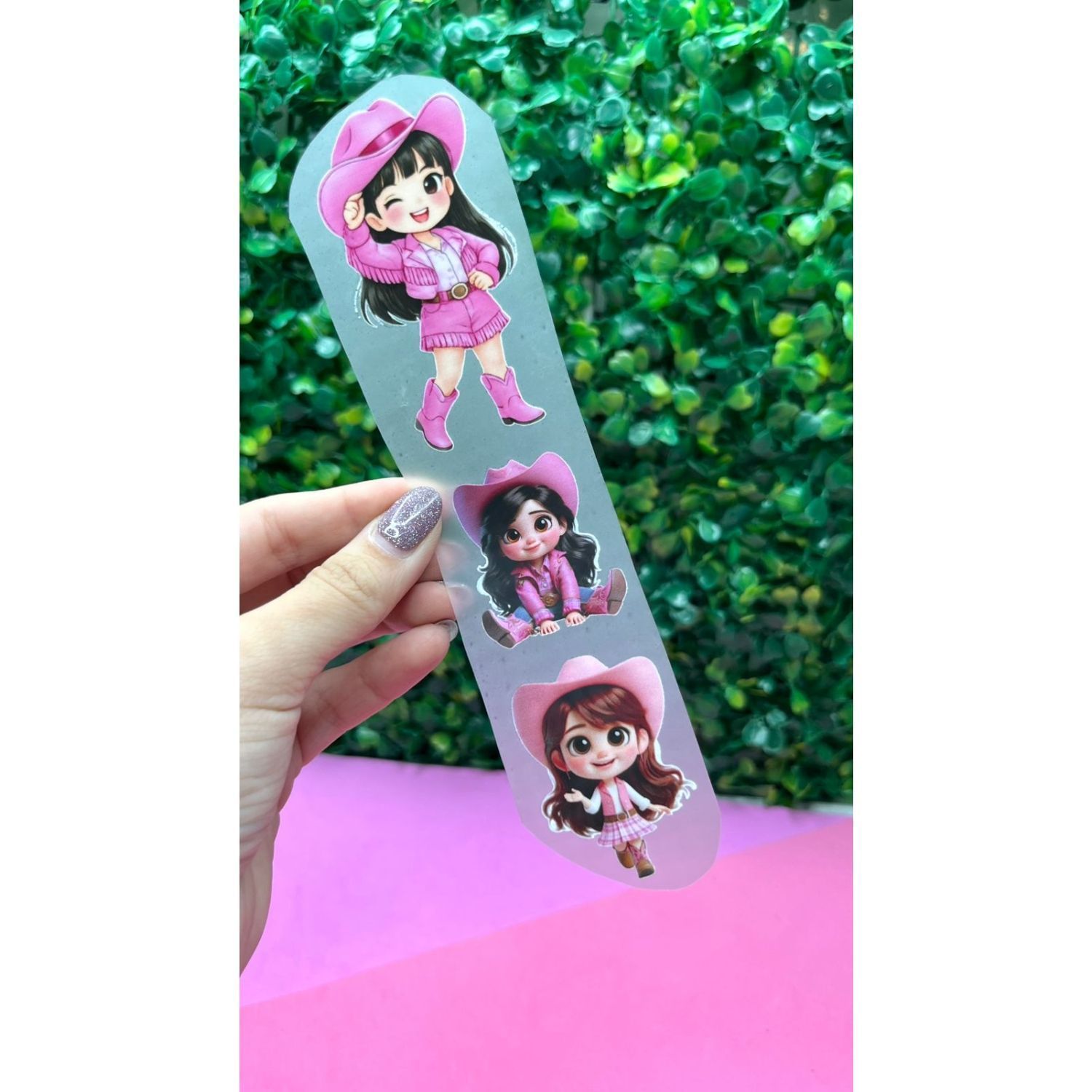 DTF têxtil feito para aplicar em fitas, fundo transparente, pode ser aplicado em fita colorida.