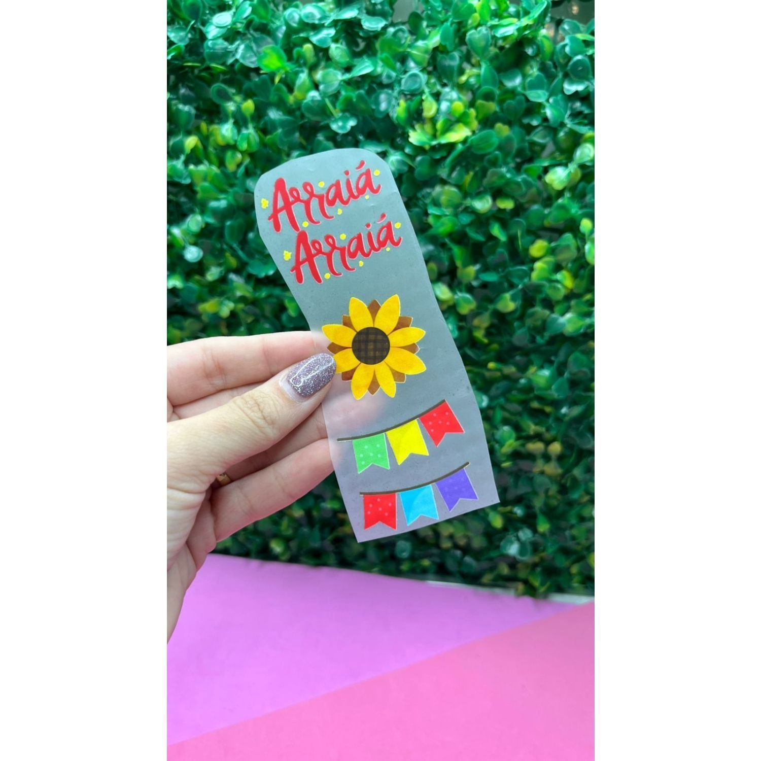 DTF têxtil feito para aplicar em fitas, fundo transparente, pode ser aplicado em fita colorida.